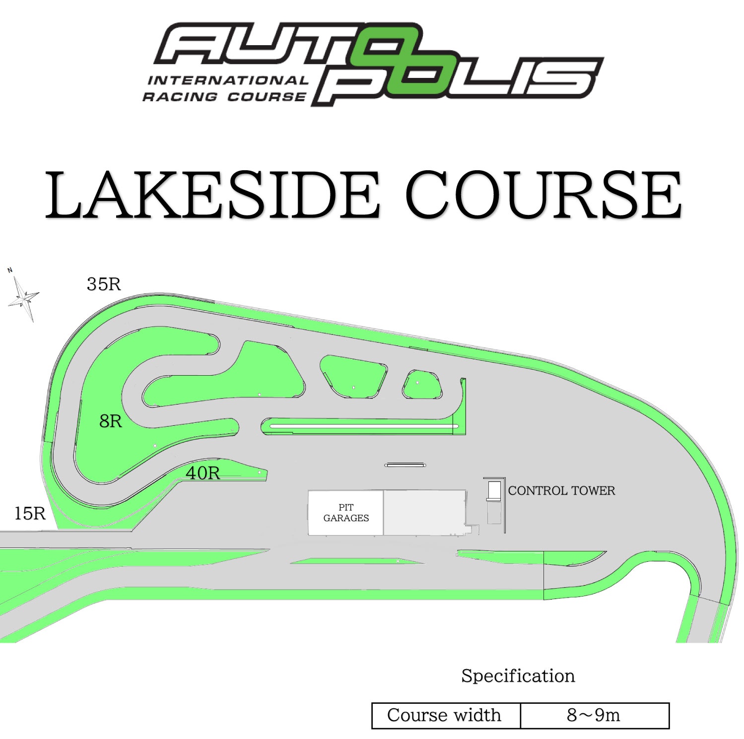 オートポリスには、国際規格のインターナショナルレージングコース(1周距離:4,674m)と、レイクサイドコース(1周距離:1.7km)のショートコースがあります。