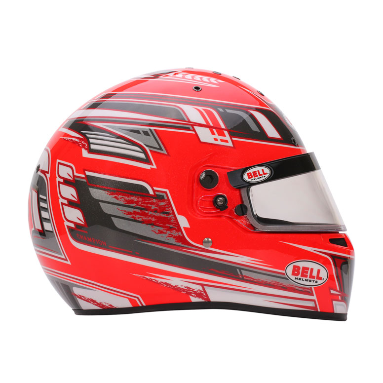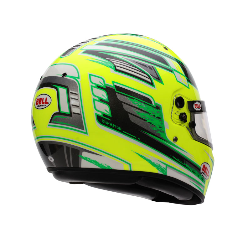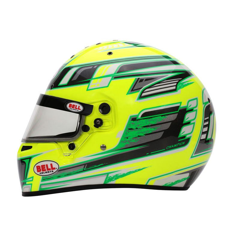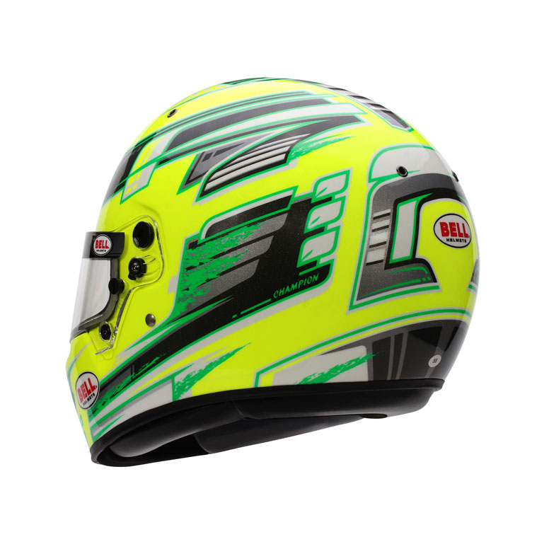 The BELL KC7-CMR Kart helmet is a lightweight junior kart helmet based on the F1-proven HP7 design. It is certified to the SNELL-FIA CMS-2016 standard.