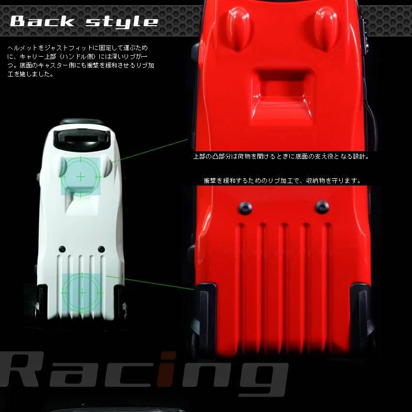 - A carry case designed to safely transport helmets, racing suits, gloves, and other gear together.