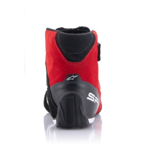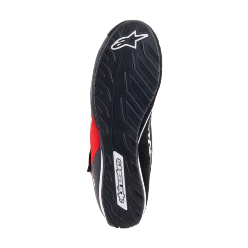Integrated rubber compound sole provides heel protection and lightweight construction. Racing shoes designed for precise handling.