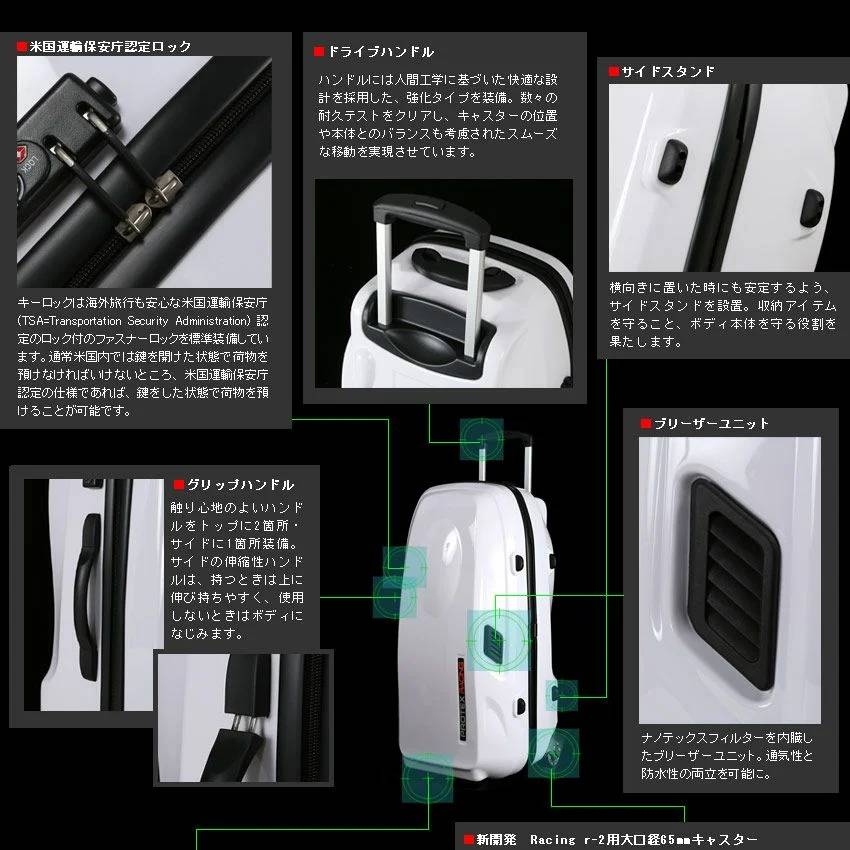 - ヘルメット/レーシングスーツ/グローブ/レーシングスーツ等をまとめて安全に運べるキャリーケースです。